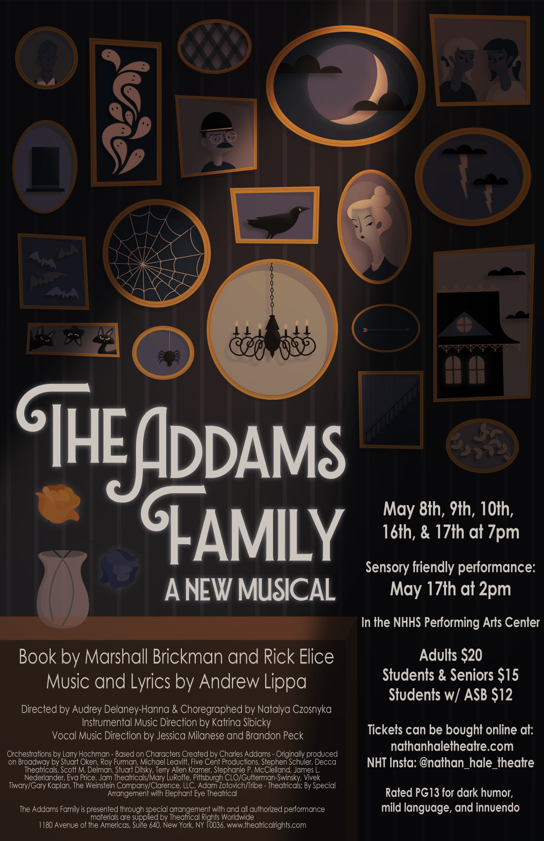 Join us for an evening with the Addams family! This dark comedy is full of fun twists and turns that while morbid, is sure to lift your spirits! (Rated PG13 for dark humor and innuendo)